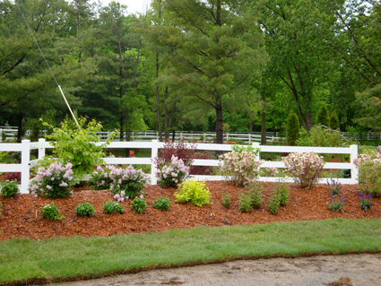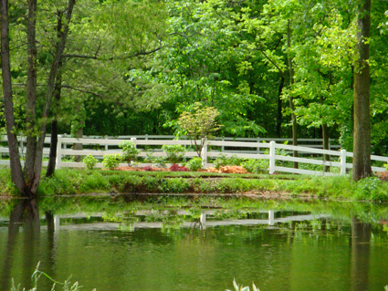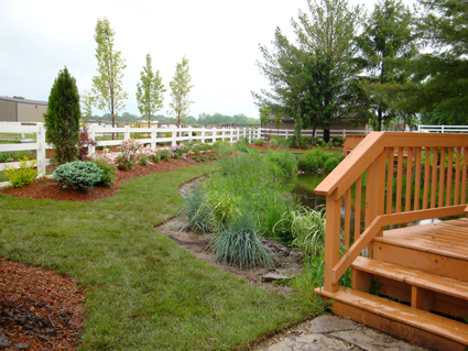 Ornamental grasses line the pond