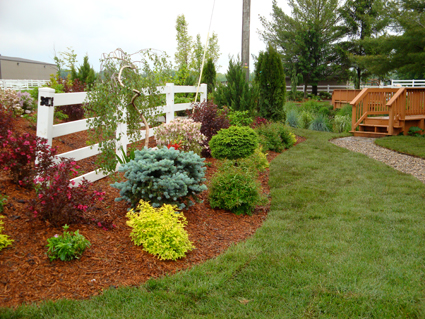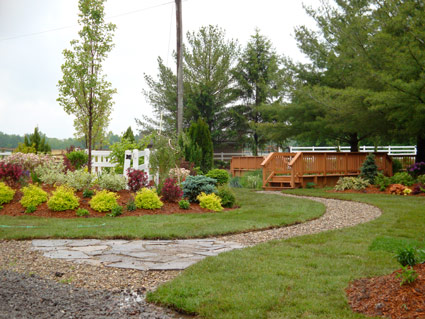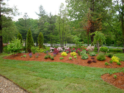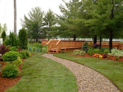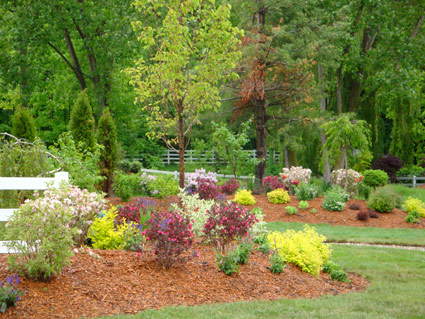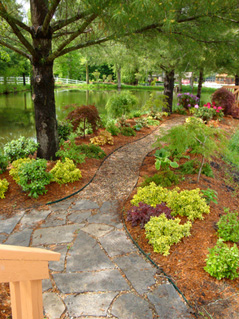 A shade garden across the pond
